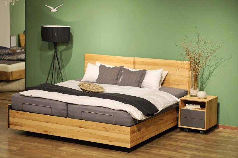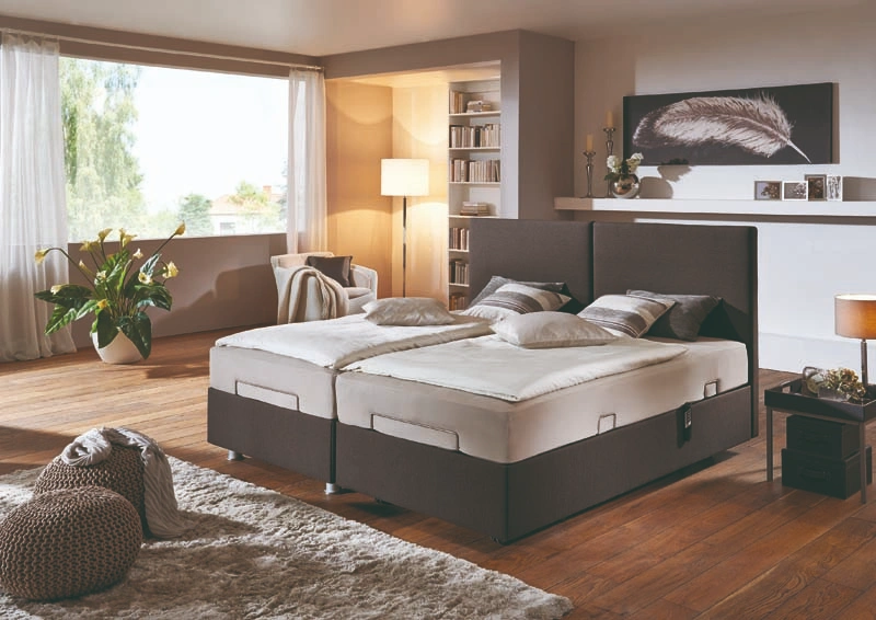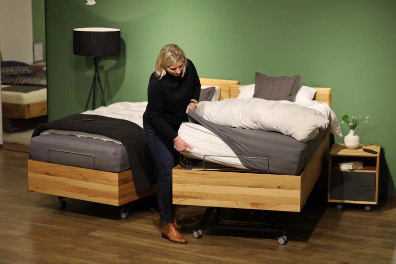 Auf Wunsch kann man eine Bettseite mit Hubsystem und das andere Bett ohne die ganze Technik, komplett ohne Besucherritze zusammenstellen. Die Kopfteile sind wahlweise hoch oder niedrig und alles in Komforthöhe.