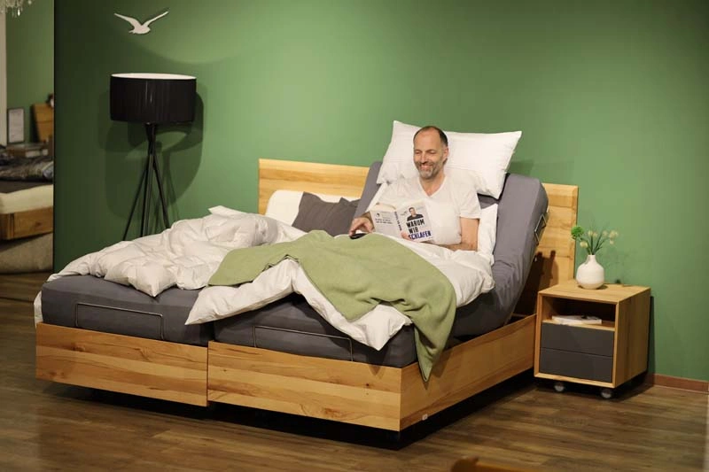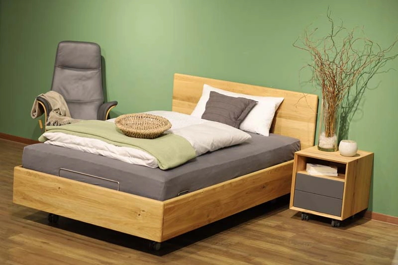 Unser Komfort Pflegebett Angebot richtet sich an alle, die nicht nur ein Seniorenbett / Massivholz Bett sondern Pflegebett suchen, welches aber nicht so aussehen soll. Daher haben unsere Komfortbetten eine wohnliche Optik, die durch die riesengroße Auswahl an Massivhölzern z.B Kernbuche oder Eiche sehr chic und wohnlich aussehen. Alternativ passt es sich z.B. auch mit abwaschbaren Polsterstoffen, in der Optik eines Boxspringbettes, mit oder ohne Topper, hervorragend in jedes Schlafzimmer an und sieht dann nicht so „fürchterlich“ aus wie die Pflegebetten der Krankenkasse, die Sie über das Sanitätshaus erhalten.